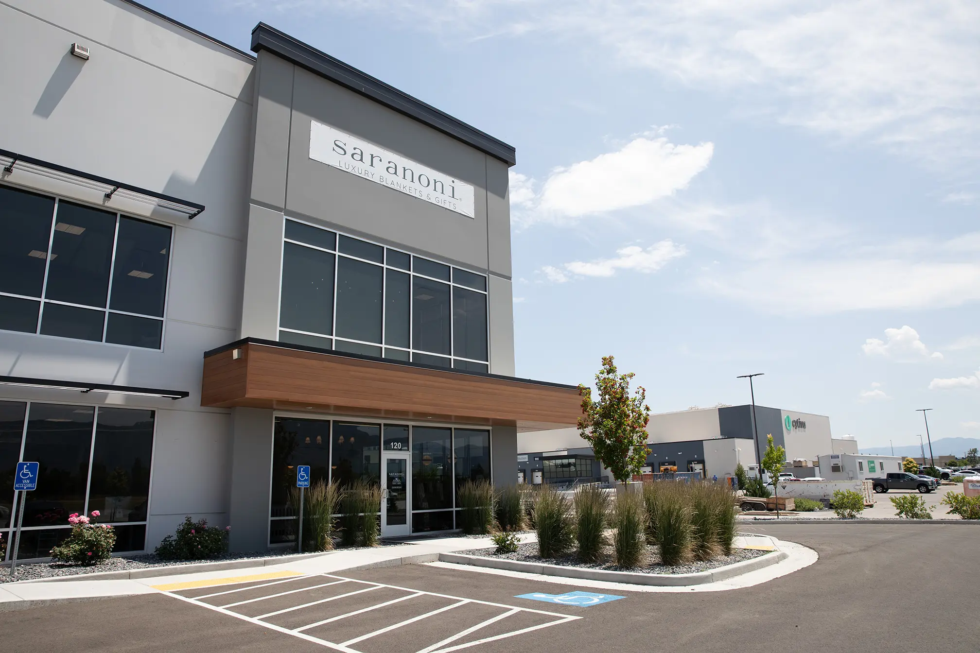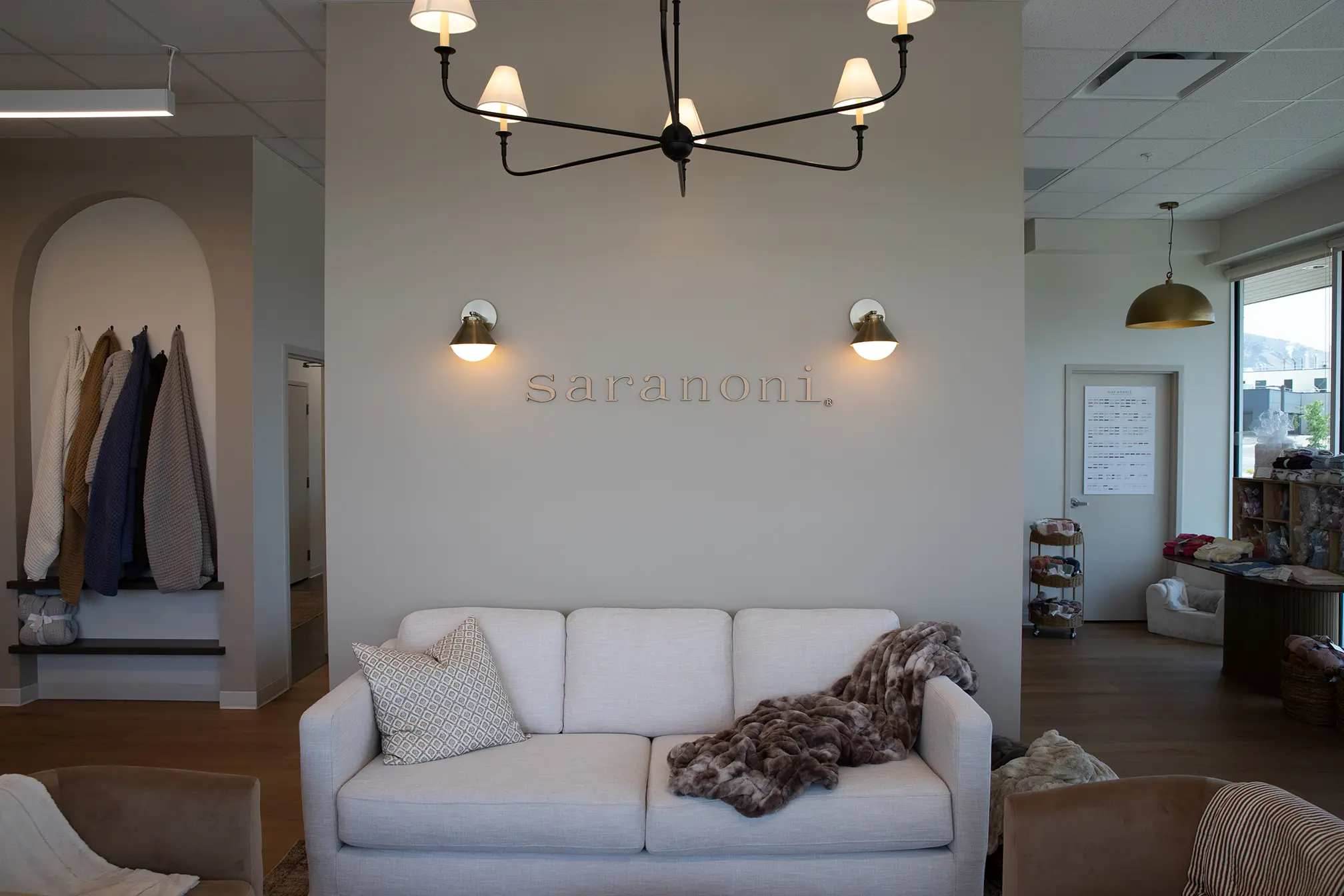In one of our previously designed warehouses we transformed the space into a warm, two-story office for Saranoni, the luxury blanket and textile brand known for ultra-soft materials and timeless designs.