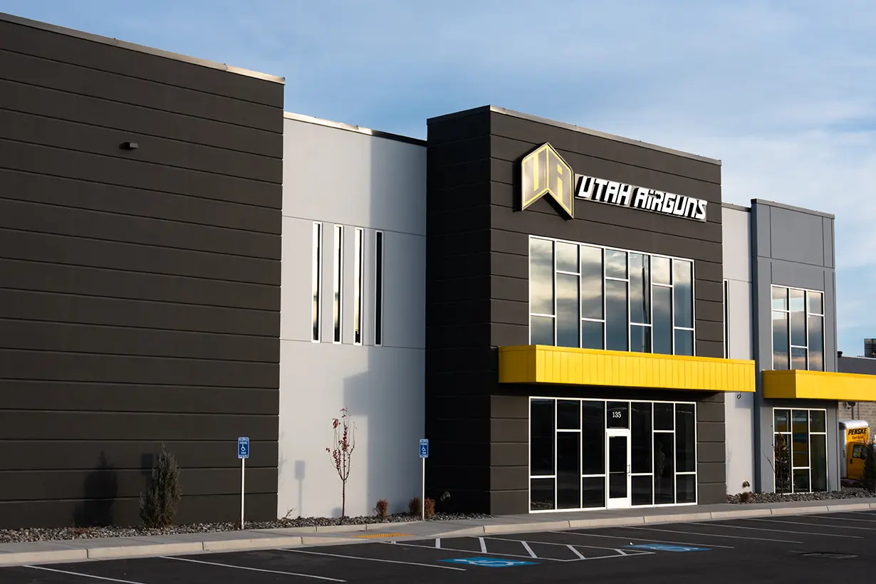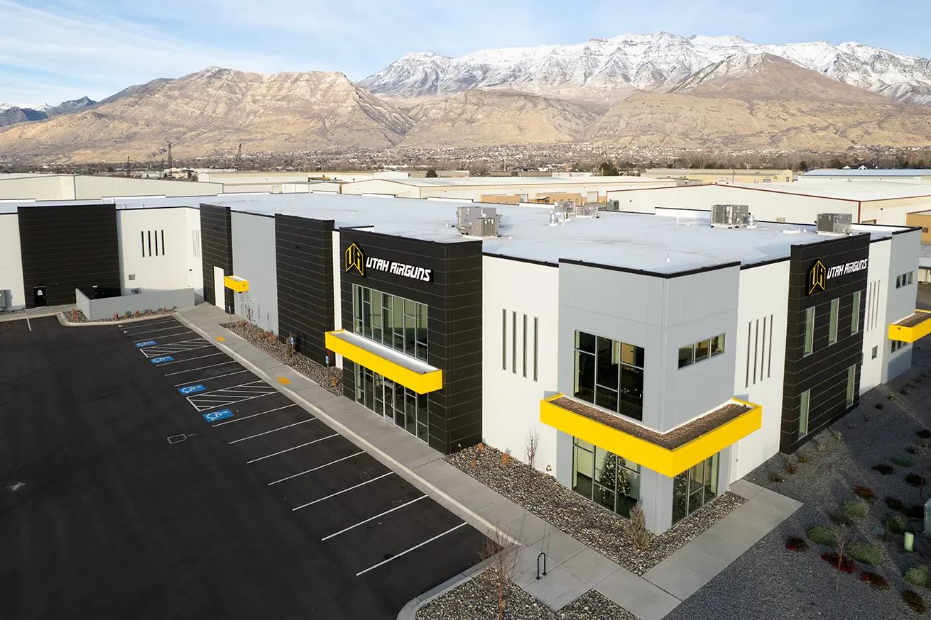 Utah Airguns is a built-to-suit facility for the largest airgun retailer in Utah, bringing retail, service, and training under one roof. Tilt-up concrete construction provides durability and efficiency, while indoor shooting ranges support safe testing and instruction.